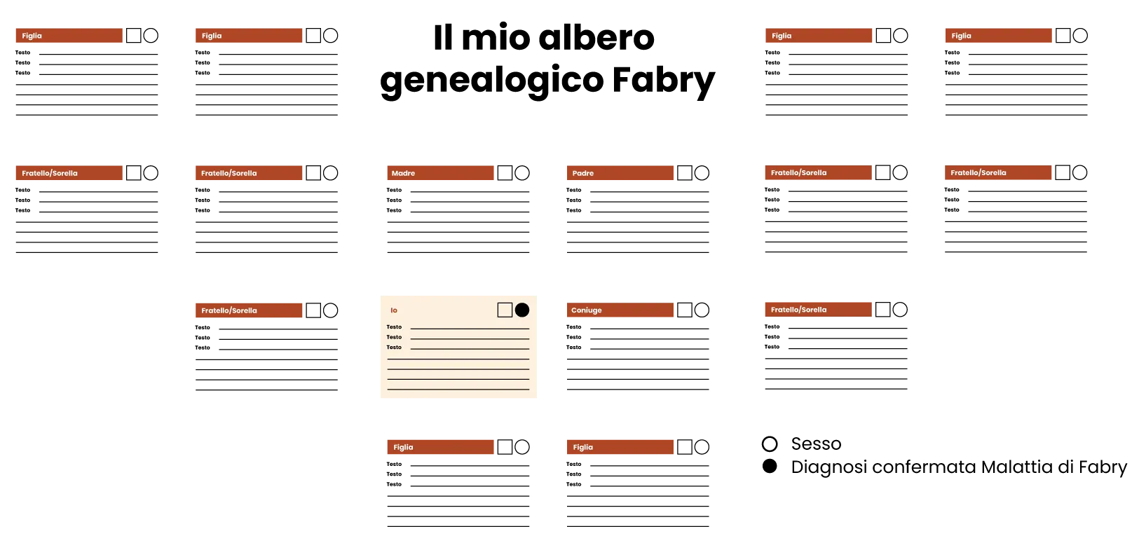Poiché la Malattia di Fabry è una condizione genetica ereditaria legata al cromosoma X, è molto probabile che altri membri della famiglia di un individuo affetto presentino a loro volta la malattia. Lo screening familiare consente al medico di diagnosticare e monitorare adeguatamente i familiari con Malattia di Fabry, nonché di gestirla tempestivamente.