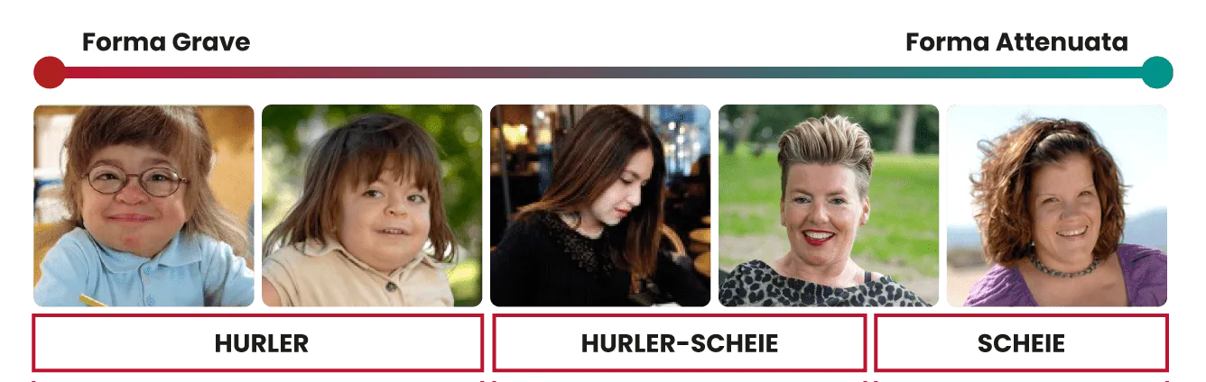 Storicamente la MPS I era suddivisa in tre diverse sindromi, il cui nome deriva dai medici che originariamente hanno descritto la condizione. Possiamo elencare queste sindromi dalla forma più grave alla meno grave in tal modo: